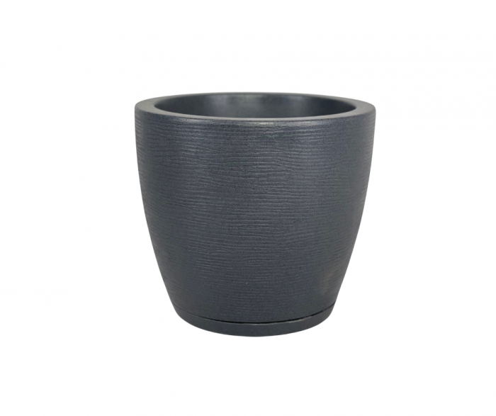 Macetero hecho de plástico 100% reciclable, resistente a exteriores, con filtro UV. El macetero viene con el plato base incluído. Tamaño 27 X 28 S